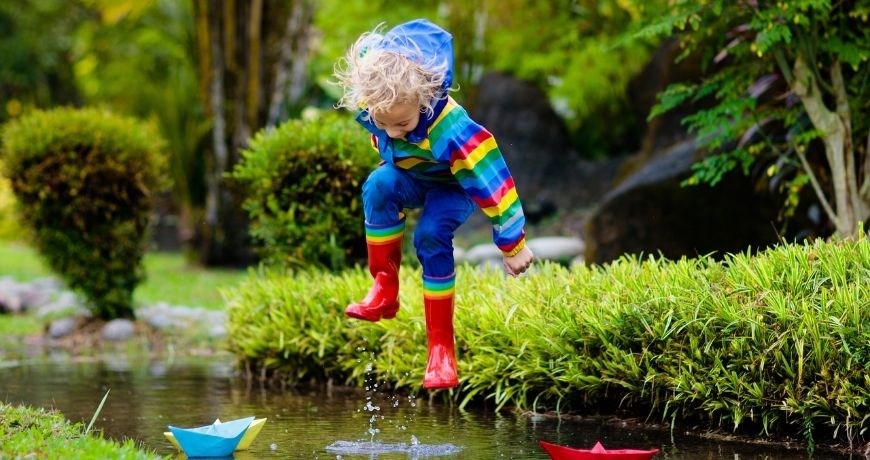 „Most nem jó ötlet a pocsolyákba ugrálni, mert nem megfelelő cipő van rajtad. De hazaérve átveheted a gumicsizmát, és indulhat is az igazi saras kaland!”